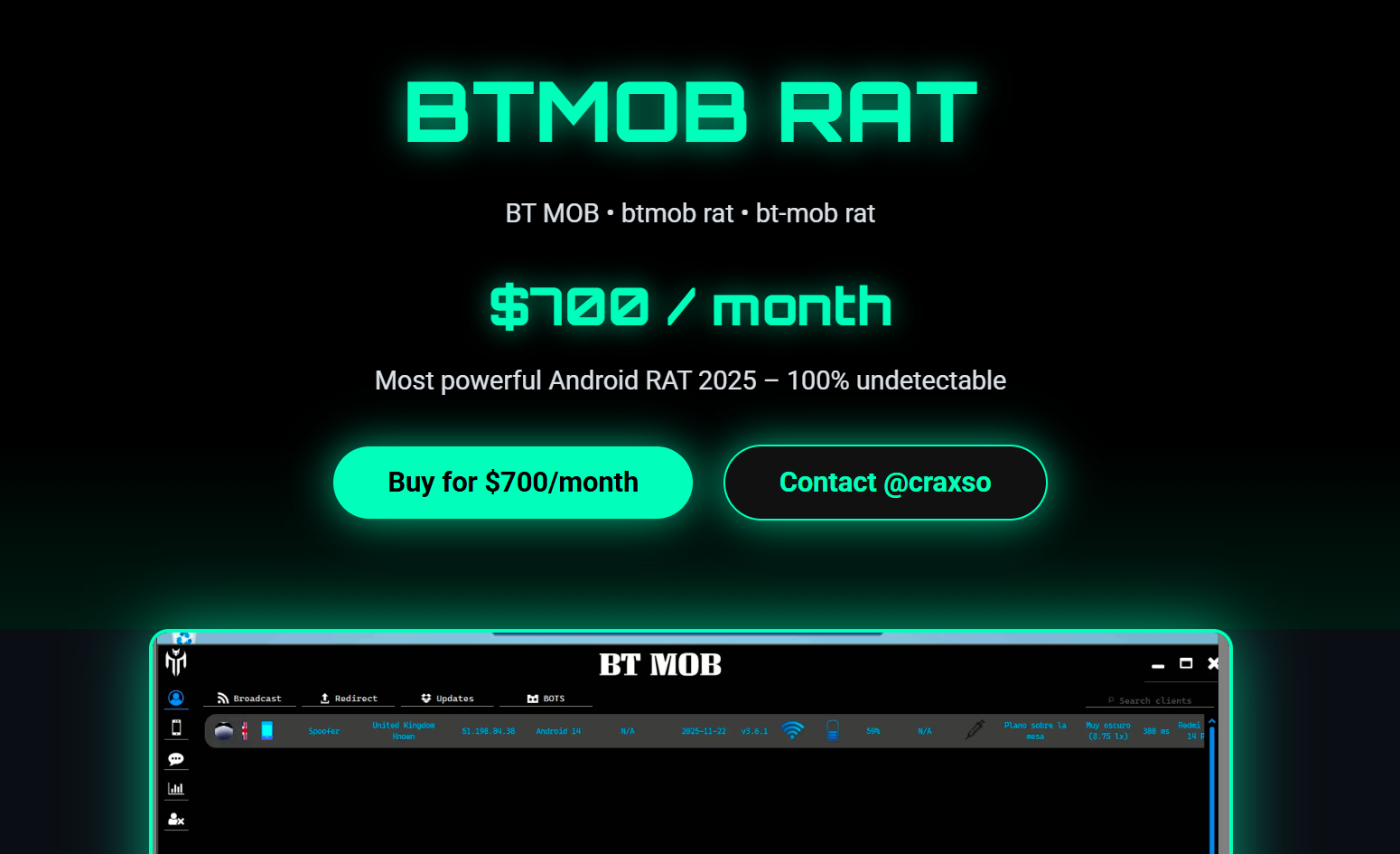 📌 En sus versiones más recientes (2025–2026), BTMOB ha evolucionado hacia un modelo “Crime-as-a-Service” (CaaS), facilitando su uso incluso por actores con bajo nivel técnico.